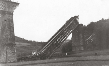 El primer corte lo realizaron de forma perpendicular y las vías, en vez de caerse, se montaron unas sobre las otras. Continuaron con la «demolición» al día siguiente, esta vez cortaron de manera inclinada, y cayó la segunda parte del puente (10).